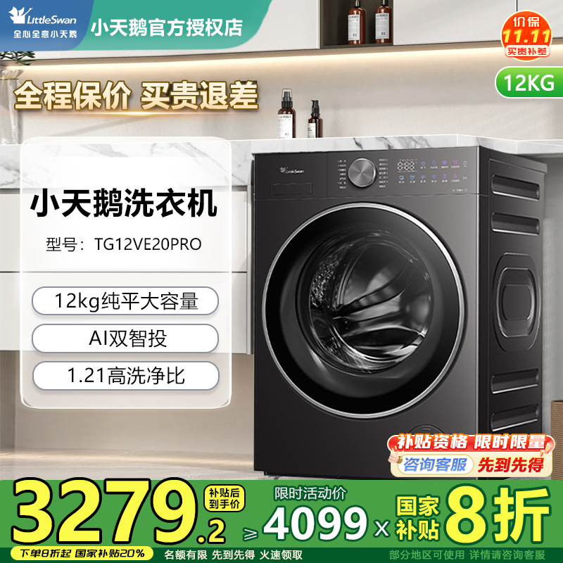 [纯平全嵌]小天鹅水魔方12KG大容量全自动滚筒洗衣机TG12VE20PRO
