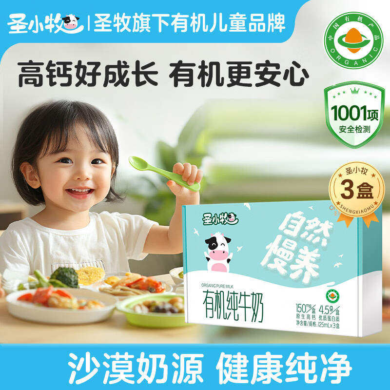 圣小牧有机儿童牛奶早餐奶 辅食零食150mg高钙 125ml*3盒