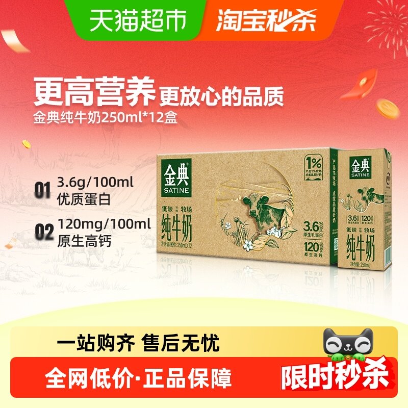 伊利金典纯牛奶250ml*12盒整箱3.6g蛋白高钙营养早餐