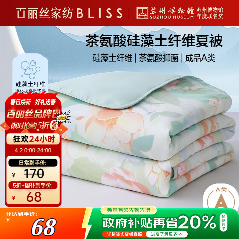 百丽丝空调被夏季夏凉被子A类抗菌防螨夏凉被芯可机洗裸睡硅藻土纤维