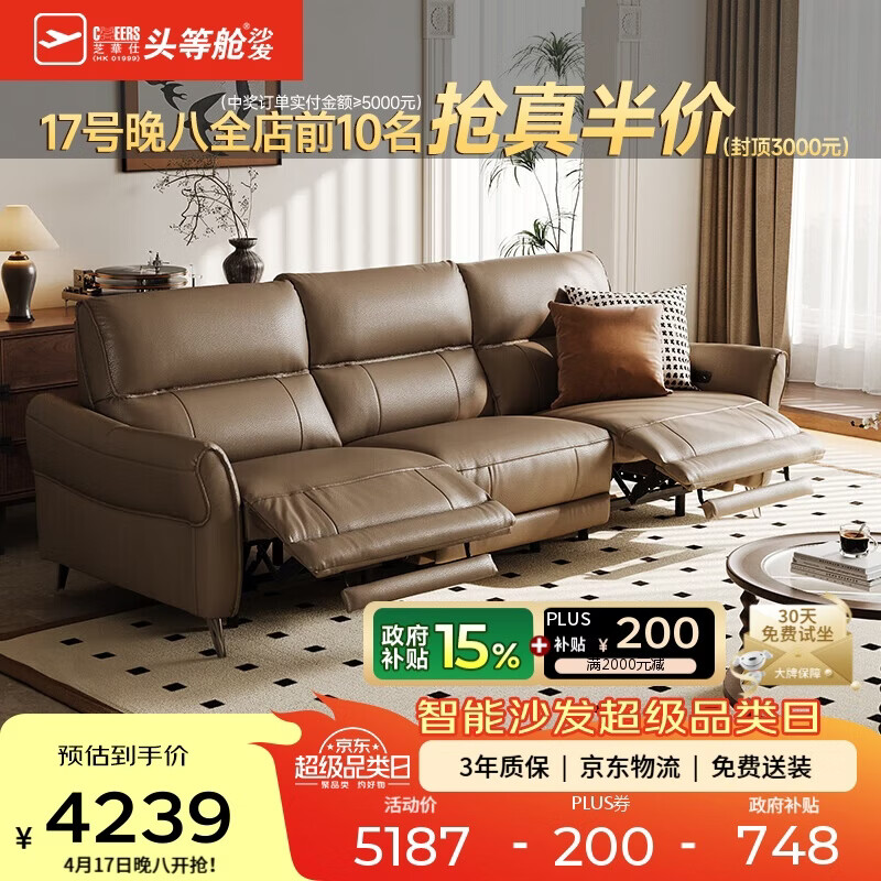 芝华仕头等舱国民沙发30572真皮零靠墙电动沙发咖色2.24m美拉德小户型
