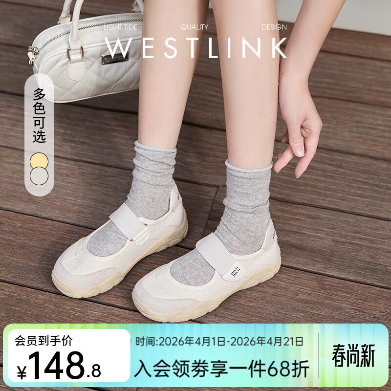 西遇运动玛丽珍鞋女2026新款夏季魔术贴休闲厚底芭蕾鞋德训鞋 米色 预售20天 35 (225)