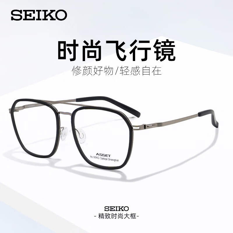 SEIKO精工近视眼镜男女款超轻眼镜框可配度数高镜片综合链接1Z 精工AE5001-0163黑色 万新1.60非球面树脂镜片