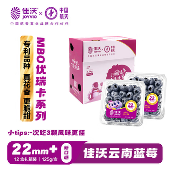 佳沃 JOYVIO 云南蓝莓MBO系列 巨无霸22mm+ 12盒原箱 约125g/盒 水果礼盒