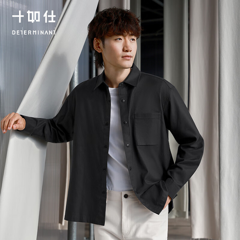 十如仕长袖衬衫男秋季法兰绒纯棉50支纱休闲衬衣外套 CS05-02 炭灰色 XL