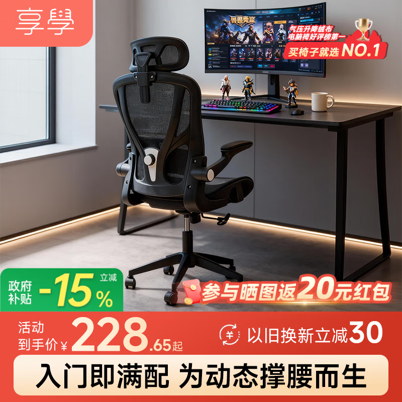 享学XC504电脑椅人体工学椅电竞椅家用办公椅子人工力学座椅 黑色