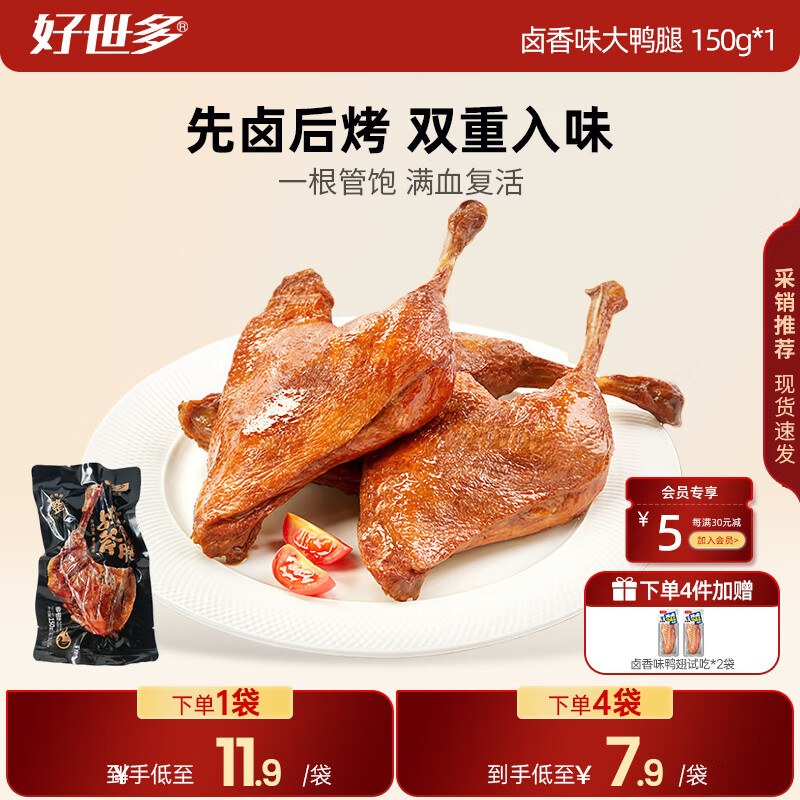 好世多【解馋巨过瘾】硬核加餐!战斧五香大鸭腿,一根管饱 【卤香味】战斧烤鸭150g*1袋
