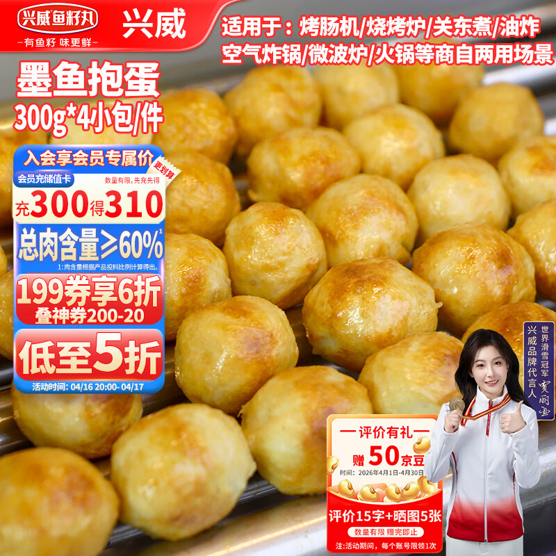 兴威墨鱼抱蛋1.2kg(300g*4包)爆蛋墨鱼丸子火锅食材烧烤空气炸锅商用