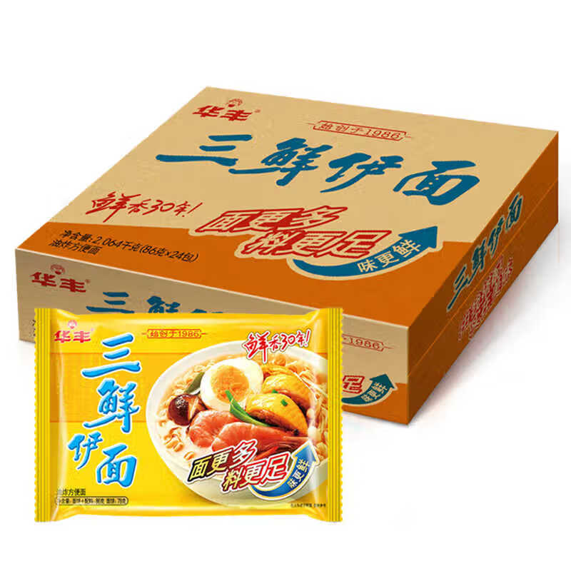 华丰三鲜伊面方便面袋装休闲食品面泡面早餐面速食面整箱 三鲜原味【86g*24包/整箱】