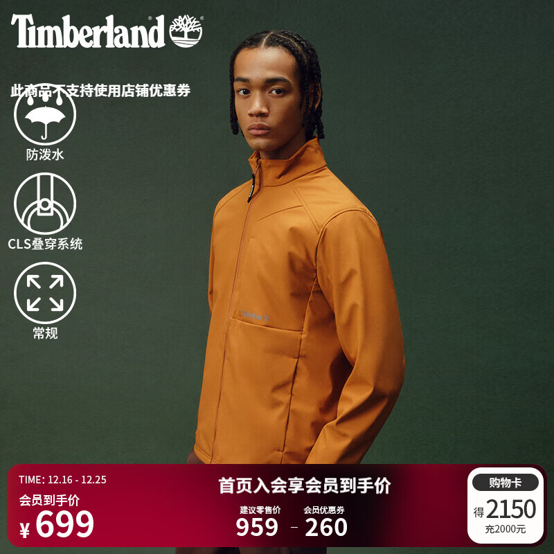 添柏岚(Timberland)官方男装外套新款户外休闲软壳衣防泼水|A5RTV A5RTVC39/皮革棕 L