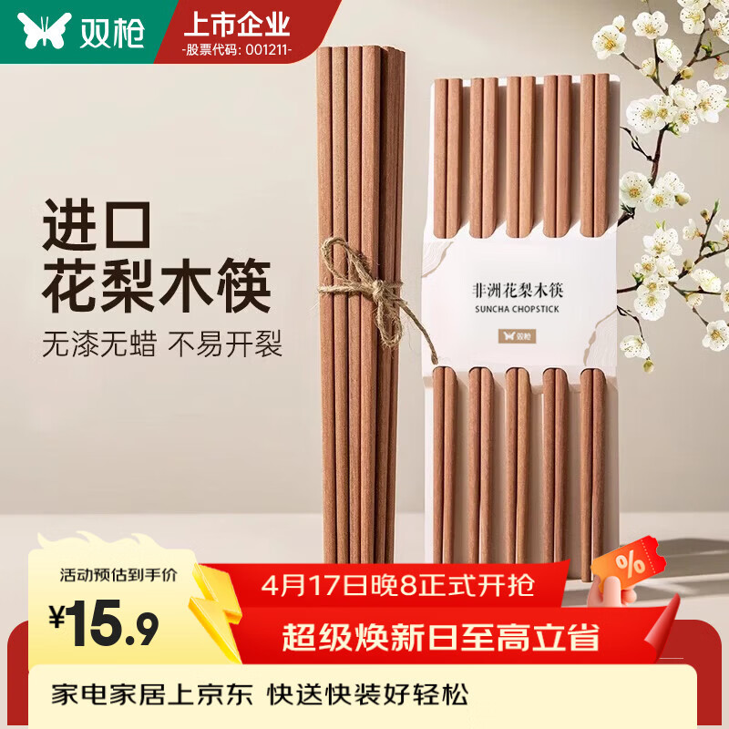 双枪(Suncha)非洲进口花梨木筷2024新款家用木筷子无漆无蜡原木筷实木筷 【无漆无蜡】花梨木筷10双装