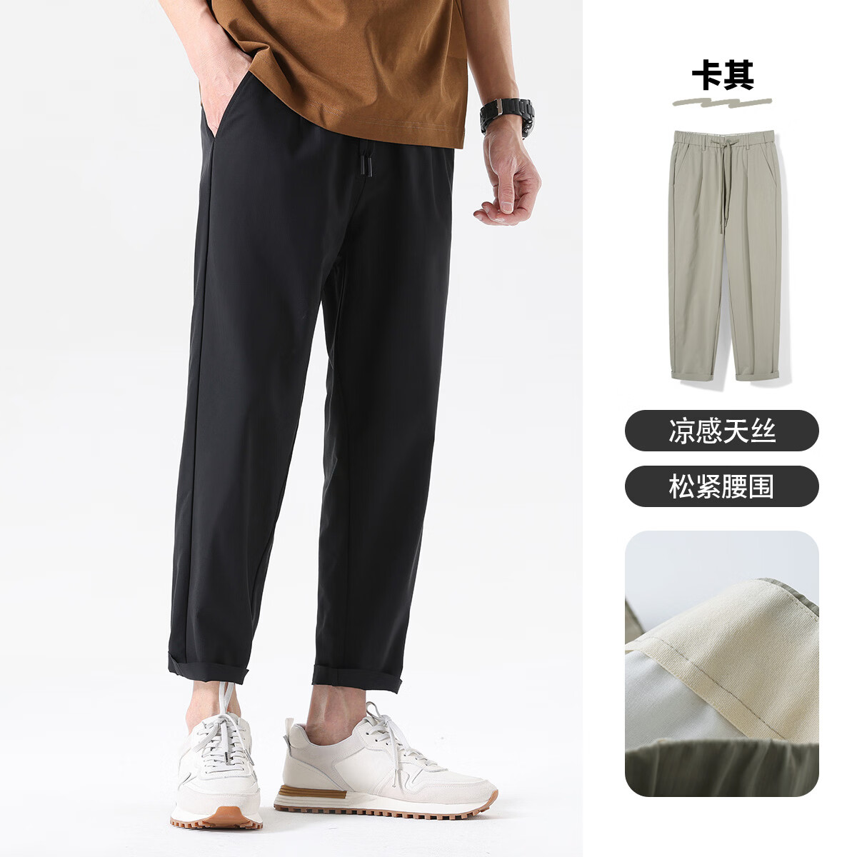 布衣传说 凉感天丝 夏季薄休闲裤子男款宽松直筒裤锥形九分裤装 黑色 32