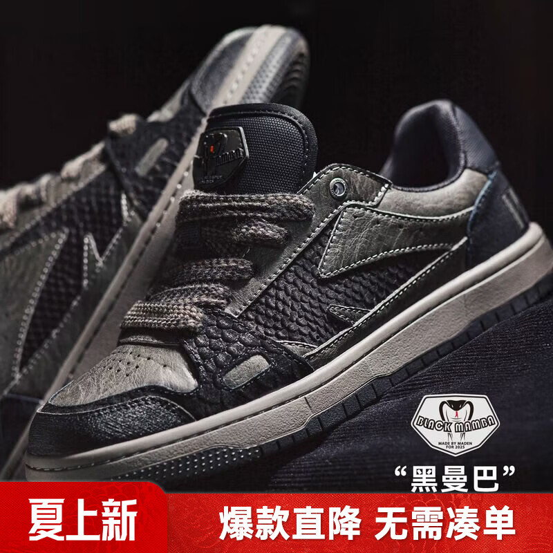 马登黑曼巴美式厚底休闲运动鞋潮深色滑板鞋男士秋冬季纯黑色板鞋 曼巴黑 【高颜值板鞋/百搭鞋子男款/平底鞋】 41