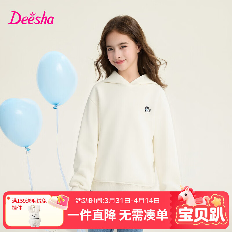 笛莎(DEESHA)官方童装女童卫衣春秋新款大童女孩儿童洋气基础款宽松连帽卫衣 本白 120
