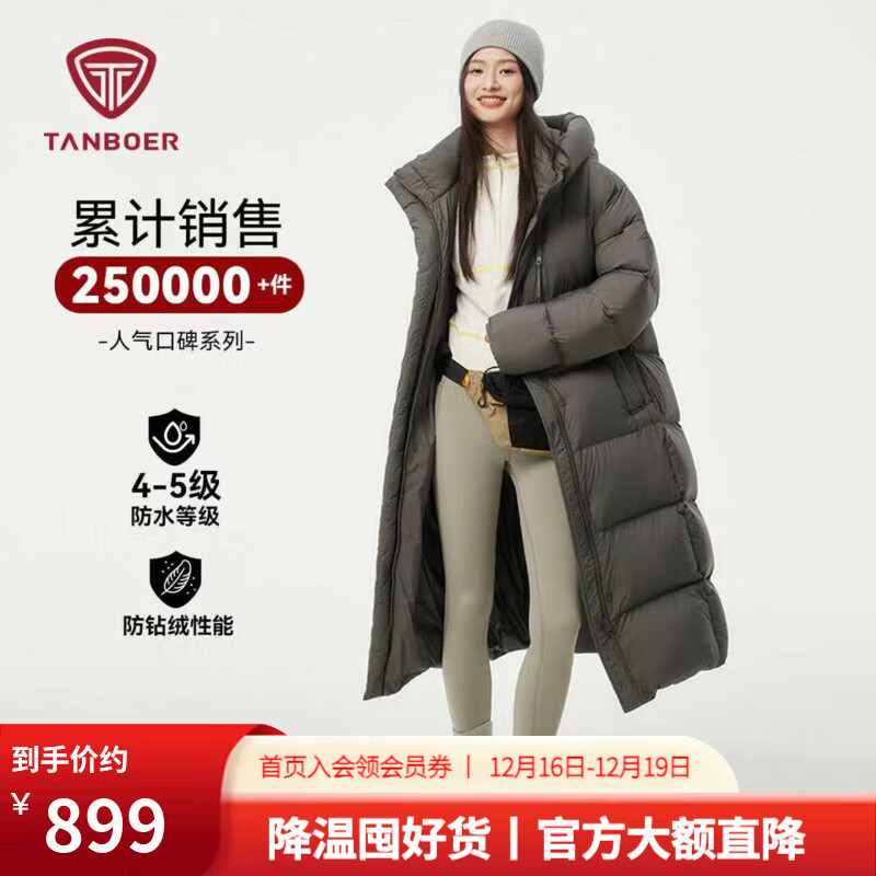 坦博尔2025冬季新款加厚云朵泡芙羽绒服女长款时尚宽松高充绒连帽外套 乌鹊灰 XS (155) 建议体重115斤之内